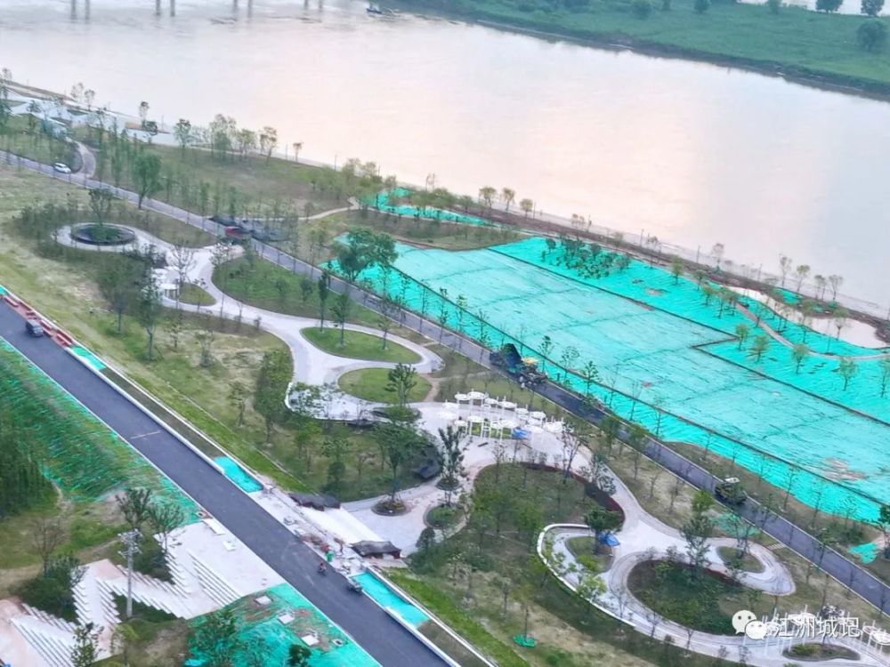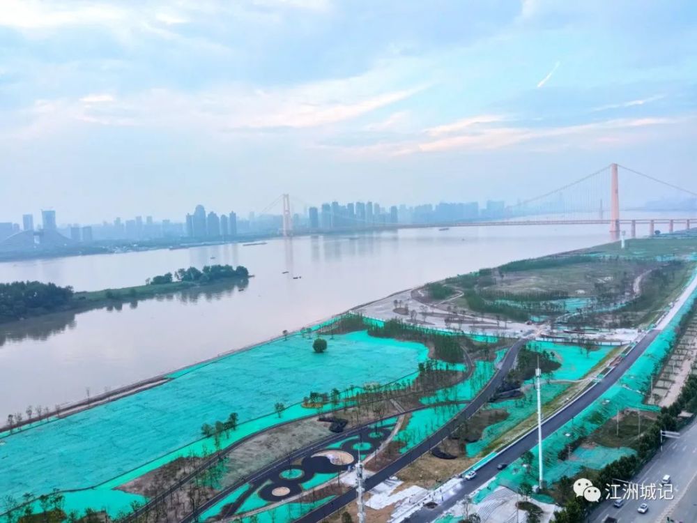 临近七一,洪山白沙洲江滩一片繁忙景象,最近一周进度很快,首先是整个江滩已被绿油油草坪覆盖,接着老武金堤路修整后全面刷黑,已摊铺沥青,变身为公园绿道,原来是1.2公里示范段将在七一开放,而整个工程已提速到年底完工(开放时间并未确定,预计仍是明年正式开放)。
