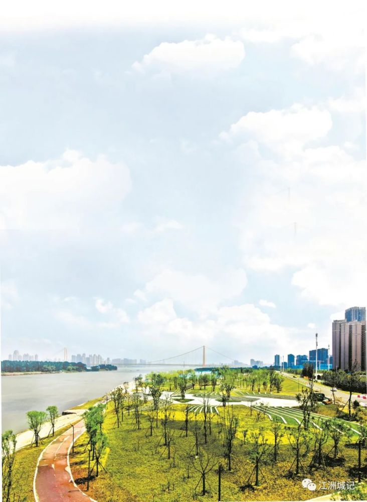 白沙洲大桥下游1.2公里长的示范段,已成公园模样。